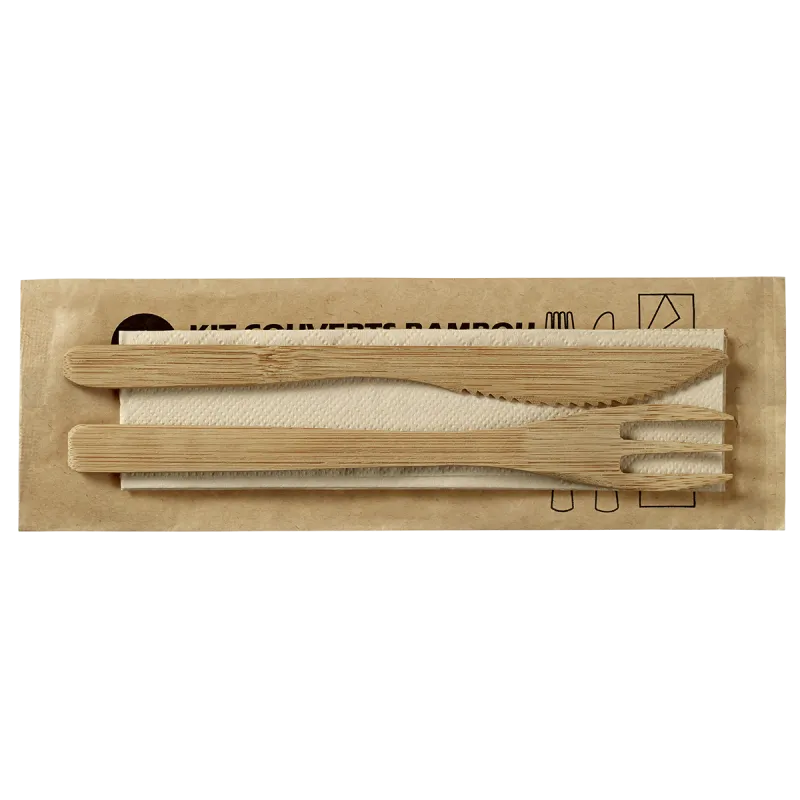 Parce que la tendance de l’emballage alimentaire écologique s’impose aujourd’hui, ces kits de couverts en bambou s’inscrivent dans l’air du temps. Écologiques et biodégradables, ces couverts en bambou peuvent se choisir dans des kits distincts pour satisfaire à tous les besoins. Quels sont les vôtres ?